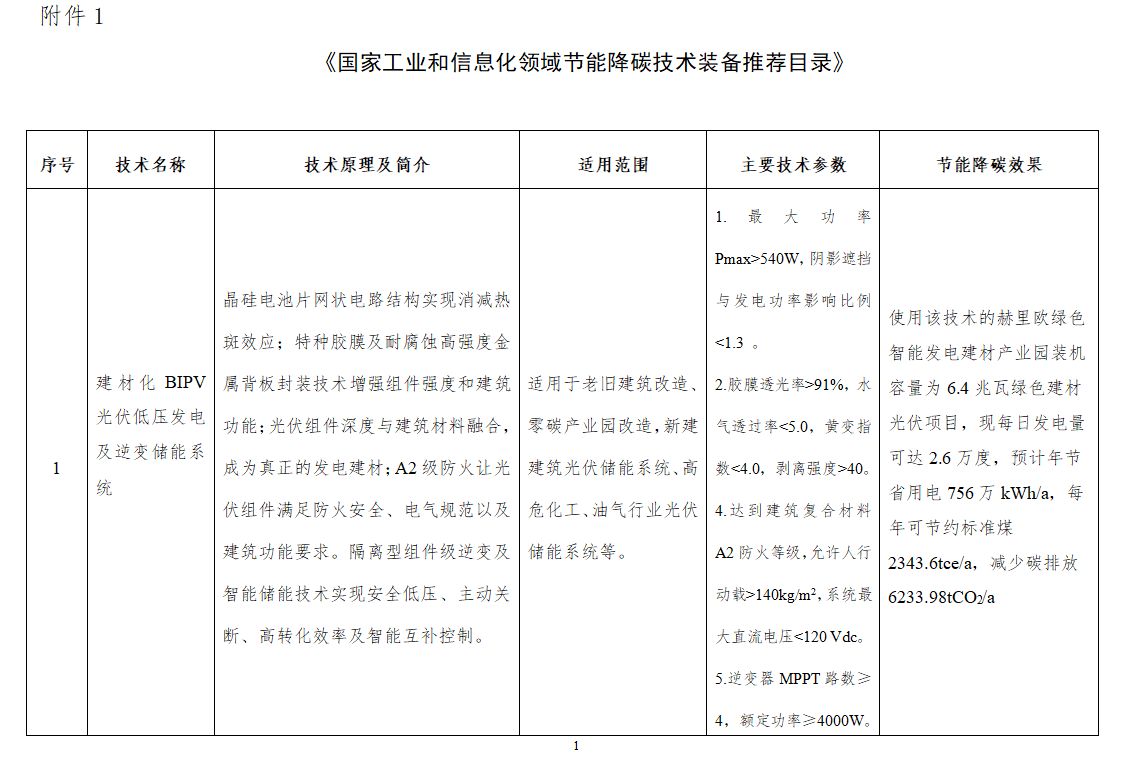 在绿色转型的关键时期,每一步科技创新都可能成为有助于可持续开展的关键力量。4月30日,工业和信息化部正式公示了《国家工业和信息化领域节能降碳技术装备推荐目录(2024年版)》,旨在推广高效节能、低碳环保的先进技术装备,助力我国工业体系加速向绿色低碳转型。在这份权威推荐目录中,Z6尊龙凯时新能源有限公司凭借其在建材化光伏系统(BIPV)领域的卓越贡献与创新成果,荣耀上榜,彰显了公司在节能降碳技术领域的领先地位。